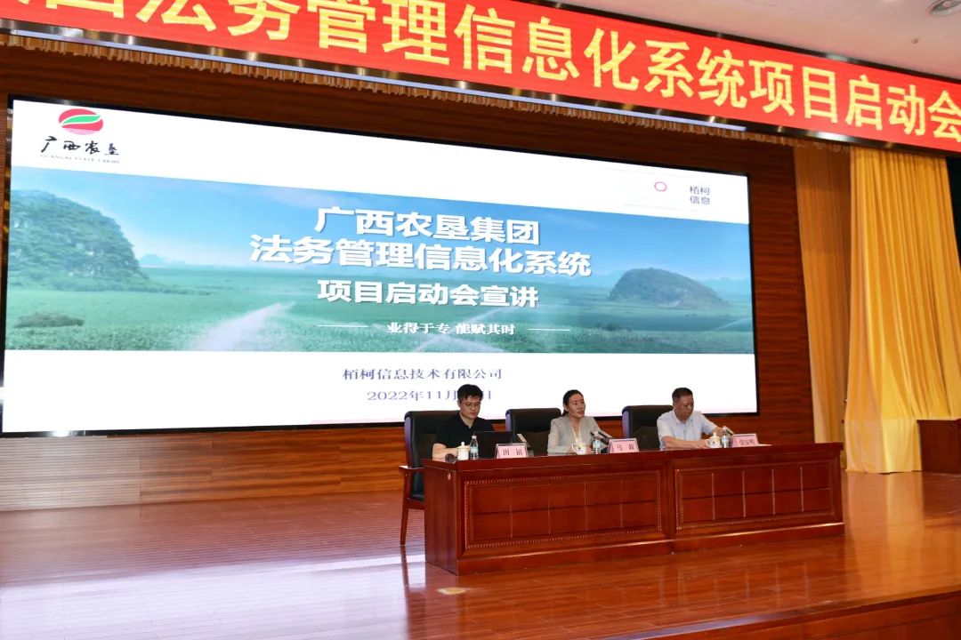 【概要描述】 11月10日上午,广西农垦集团法务管理信息化系统项目启动会召开,标志着集团法务管理信息化系统建设正式启动。农垦集团党委书记、董事长甘承会出席会议并作动员讲话,强调要贯彻落实党的二十大精神,统一思想,提高站位,加快建设一流的法务管理信息化系统,保障集团安全发展,加快打造现代一流食品企业。
